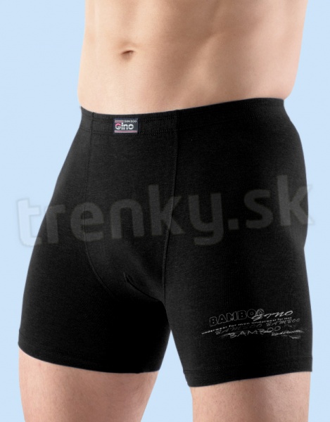 Pánske boxerky značky Gino s klinom v rozkroku, rada bamboo v čiernej farbe s logom.