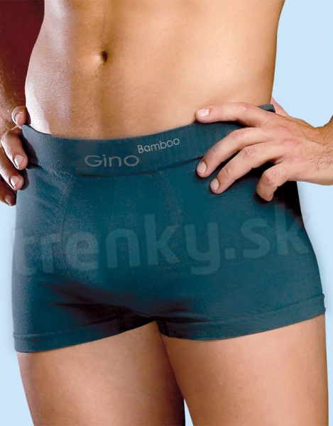 Pánske boxerky značky Gino s klinom v rozkroku rady bamboo v petrolejovo modrej farbe s logom.