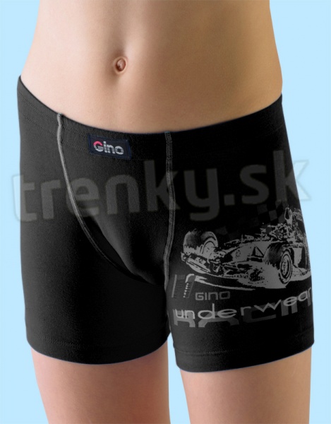 Chlapčenské boxerky s klinom Gino v čiernej s obrázkom a logom.
