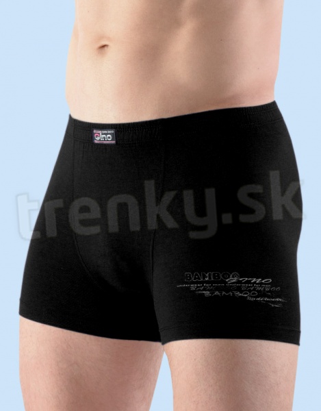 Pánske boxerky značky Gino s klinom v rozkroku, rada bamboo v čiernej farbe s logom.