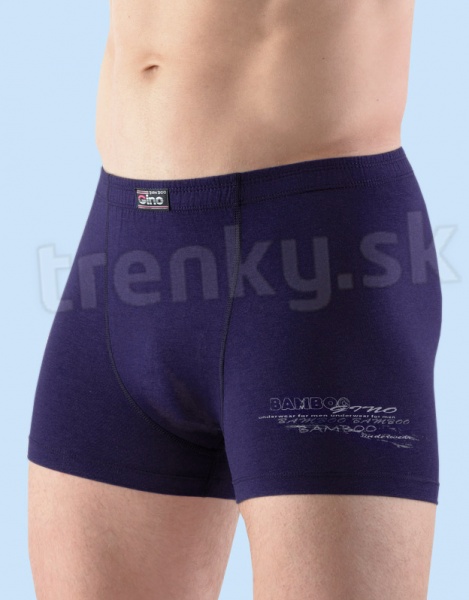 Pánske boxerky značky Gino s klinom v rozkroku, rada bamboo v tmavo modrej farbe s logom.