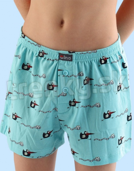 Chlapčenské bavlnené trenky značky Gino v bielej farbe s farebnými obrázkami a logom.