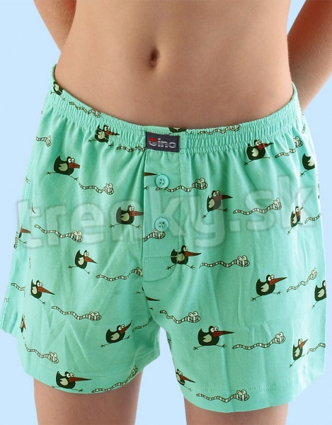 Chlapčenské bavlnené trenky značky Gino v zelenej farbe s farebnými obrázkami a logom.