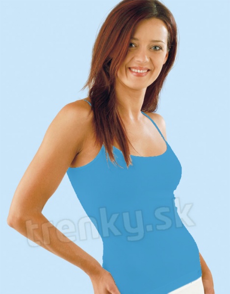 Dámske tielko značky Gina s úzkymi ramienkami rady bamboo v modrej farbe s bielym logom na ľavom boku.