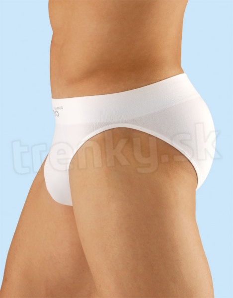 Pánske slipy značky Gino s širším bokom rady bamboo v bielej farbe s logom.