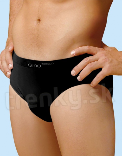 Pánske slipy značky Gino s širším bokom rady bamboo v čiernej farbe s logom.