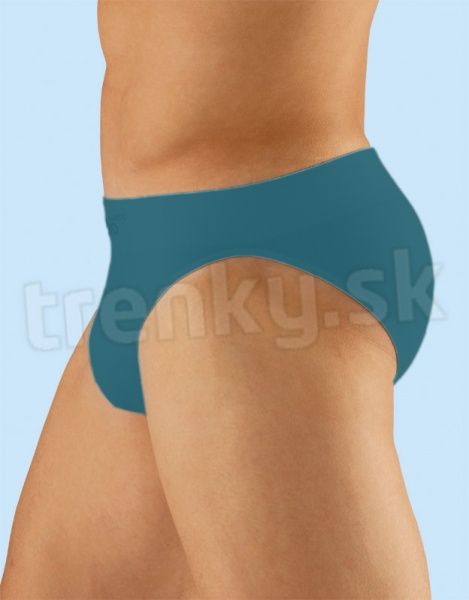 Pánske slipy značky Gino s širším bokom rady bamboo v petrolejovo modrej farbe s logom.