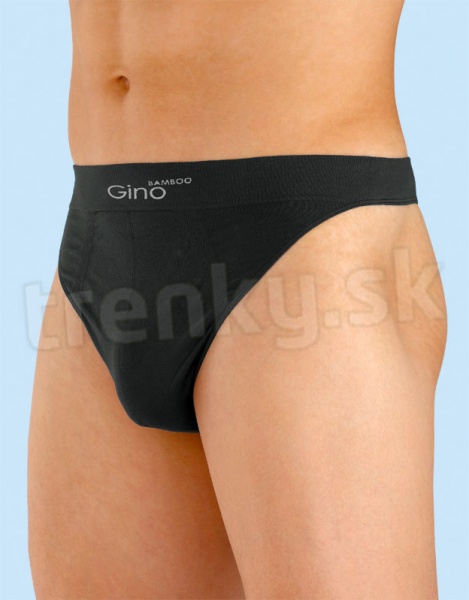 Pánske slipy tangá značky Gino s úzkym bokom rady bamboo v čiernej farbe s logom.